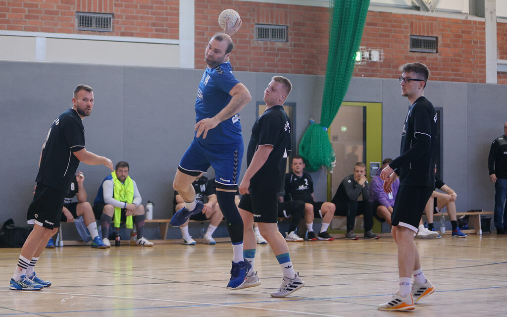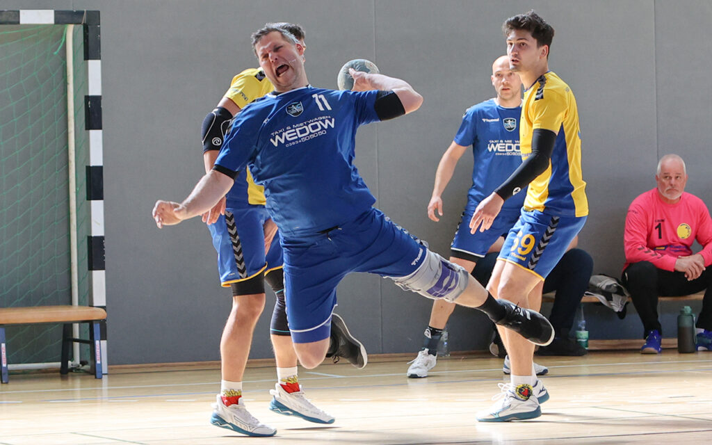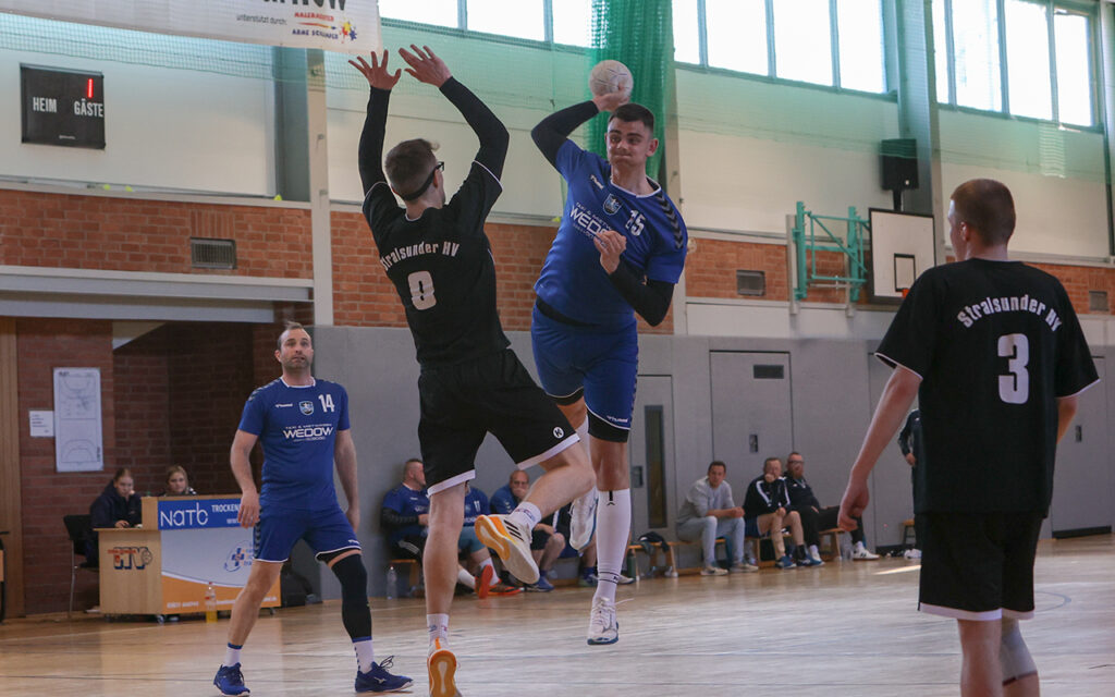 Doch die Männer aus Greifswald ließen sich davon nicht beeindrucken. Von der ersten Minute an zeigten sie, warum sie das Double unbedingt wollten. Die aggressive und bewegliche Abwehr setzte die Schützen des SHV unter Druck und zwang sie zu schwierigen Abschlüssen. Aus den Ballgewinnen heraus konnten immer wieder einfache Tore erzielt werden. Nach 12 Minuten stand es bereits 8:1 für Greifswald – ein deutliches Zeichen.